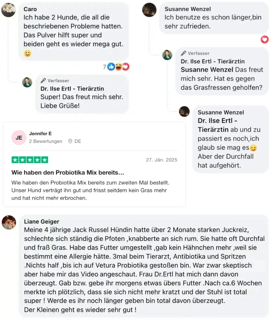 „Ich empfehle bei Grasfressen und Verdauungsproblemen den Probiotika-Mix von Vetura.“