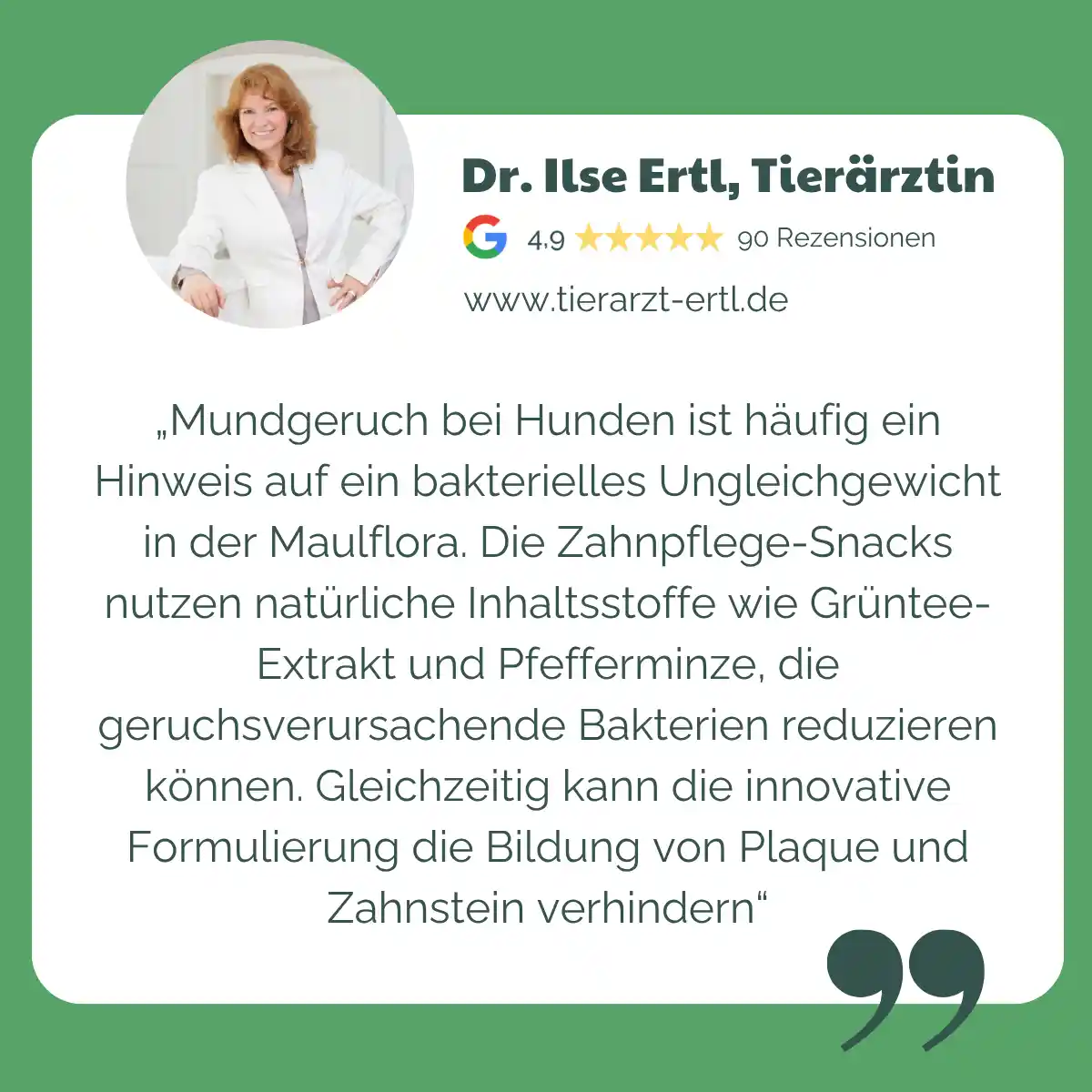 “Die Lucky Smile Zahnpflege-Snacks können die Bildung von Plaque und Zahnstein verhindern.”