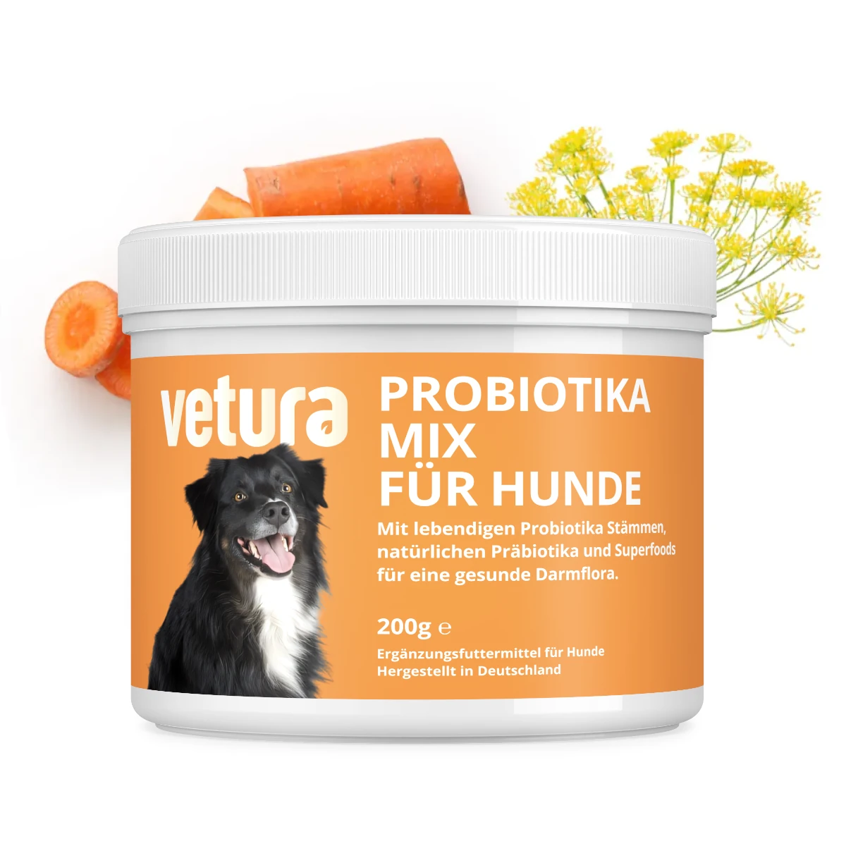 Bei chronischen Verdauungsproblemen, Juckreiz ohne klare Ursache oder nach einer Antibiotika-Behandlung empfehle ich die gezielte Unterstützung der Darmflora mit dem Probiotika-Mix von Vetura. Der enthaltene Bacillus velezensis Stamm ist sporenbildend, histaminneutral und eignet sich daher auch für allergische und futtermittelempfindliche Hunde. Die Präbiotika aus Zichorie und Karotten ernähren die guten Darmbakterien und unterstützen ein langfristig stabiles Mikrobiom.