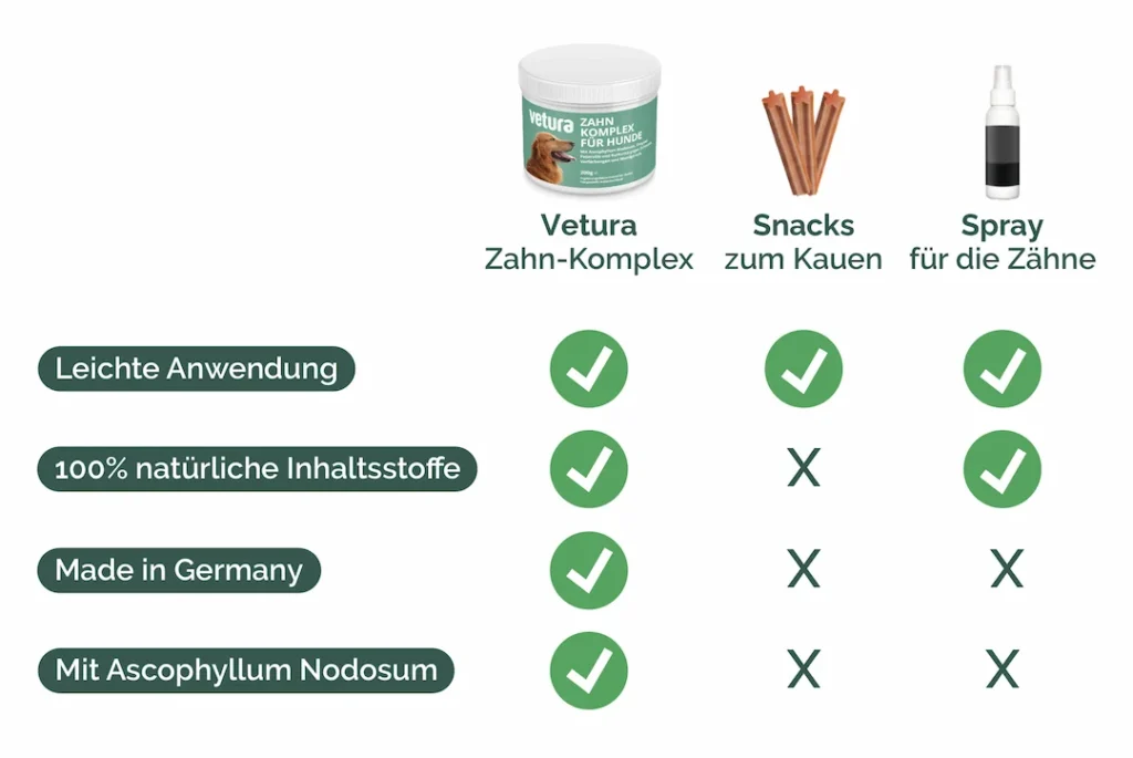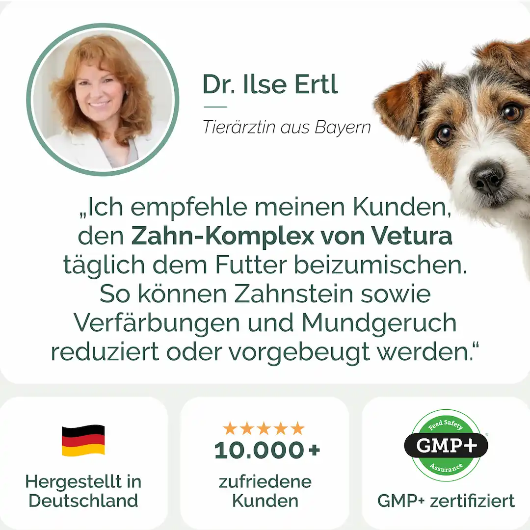 „Ich empfehle den Zahn-Komplex von Vetura, um die Zahnhygiene zu unterstützen.“