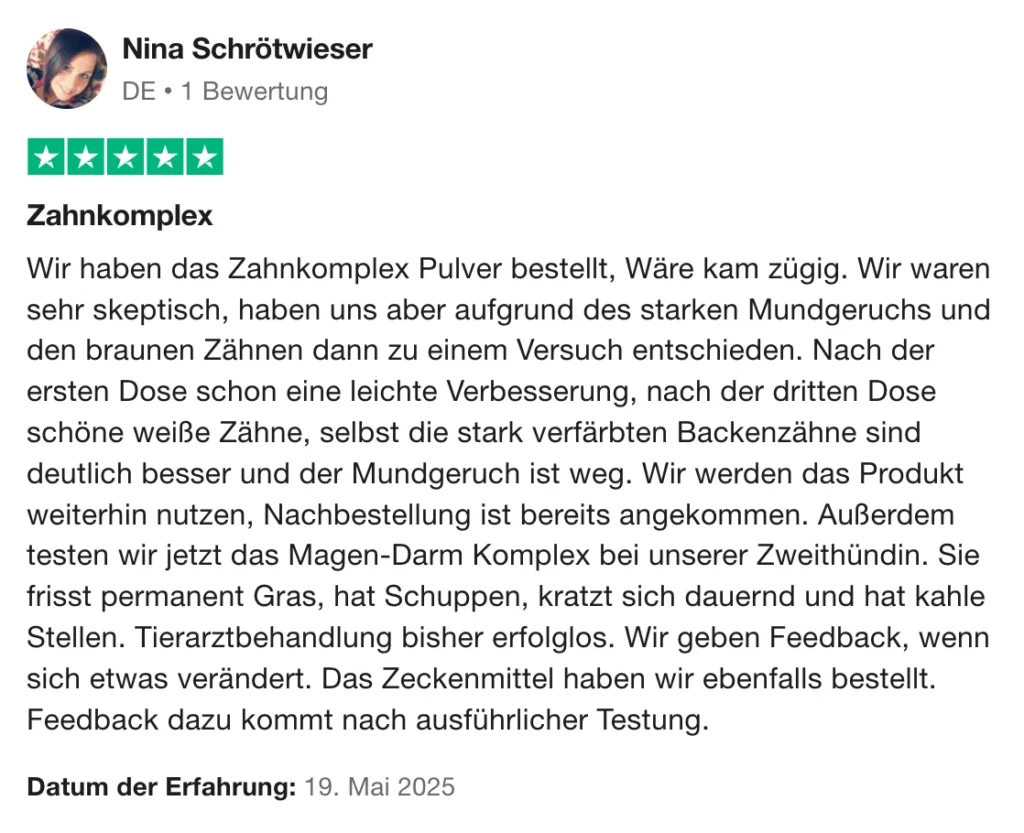 „Ich empfehle den Zahn-Komplex von Vetura, um die Zahnhygiene zu unterstützen.“